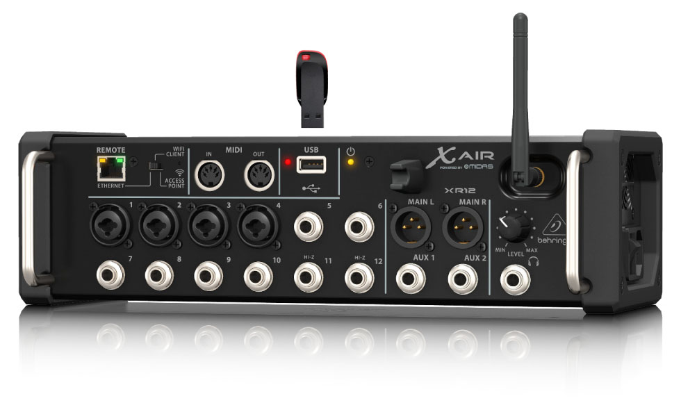 Đầu nối USB loại A ở bảng điều khiển phía trước làm cho XR12 không chỉ là một giải pháp trộn kỹ thuật số mạnh mẽ đáng kinh ngạc mà còn cho phép ghi trực tiếp các bản nhạc âm thanh nổi trực tiếp của bạn vào phương tiện flash USB hoặc ổ cứng. Quay số trong bản phối trực tiếp hoàn hảo với các hiệu ứng và độ trễ bằng 0, đồng thời gửi bản phối âm thanh nổi chuyên dụng đến ổ đĩa ngón tay cái của bạn để ghi âm hoặc phát nhạc nền trong thời gian giải lao.